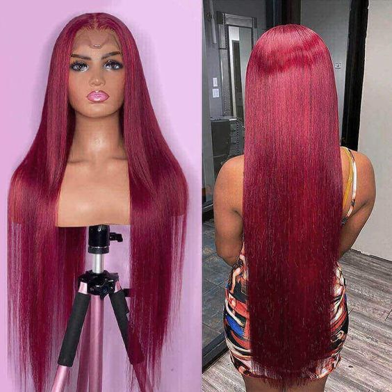 Straight Hair Burgundy Color 13x4 Lace Front Wig Human Hair Wigs 99J Red Hair Pre-Plucked 180% Colored Human Hair Deep Part Wigs