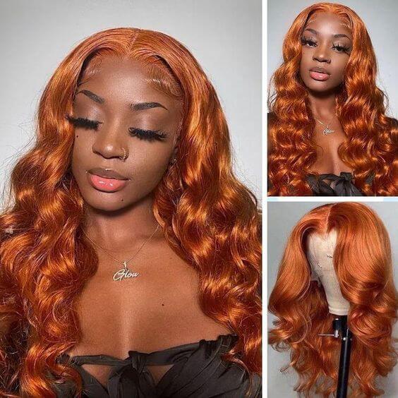 Ginger Hair Body Wave Wig Pre Plucked Transparent Human Hair 13x4 Lace Front Wigs