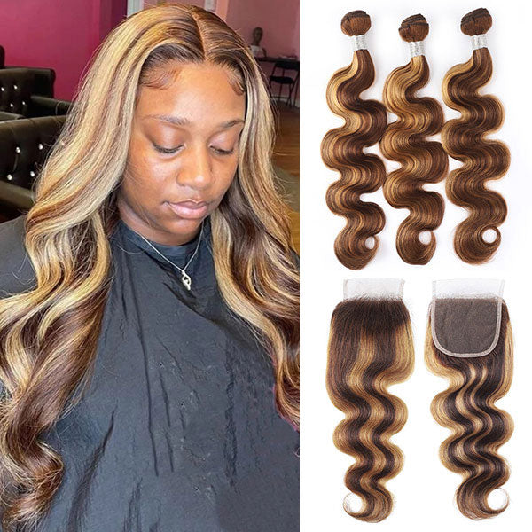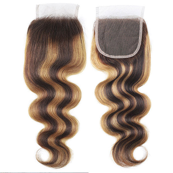 Highlight P4/27 Body Wave Human Hair With 4x4 Lace Closure Peruvian Human Hair Bundle