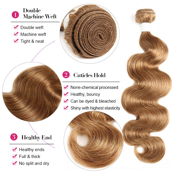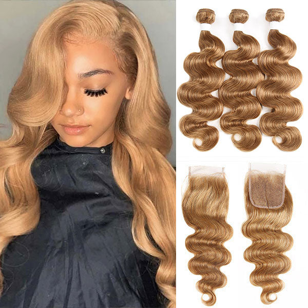 27# Blonde Color Body Wave Hair Bundles With 4*4 Lace Closure Brazilian Hair