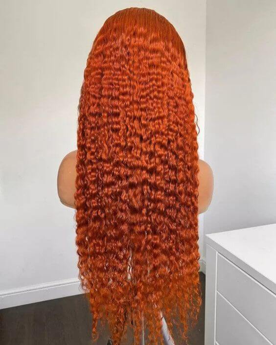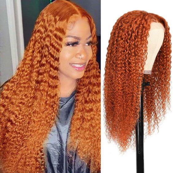 Deep Curly Human Hair Lace Wig Ginger Color Glueless Transparent T Part Lace Wig